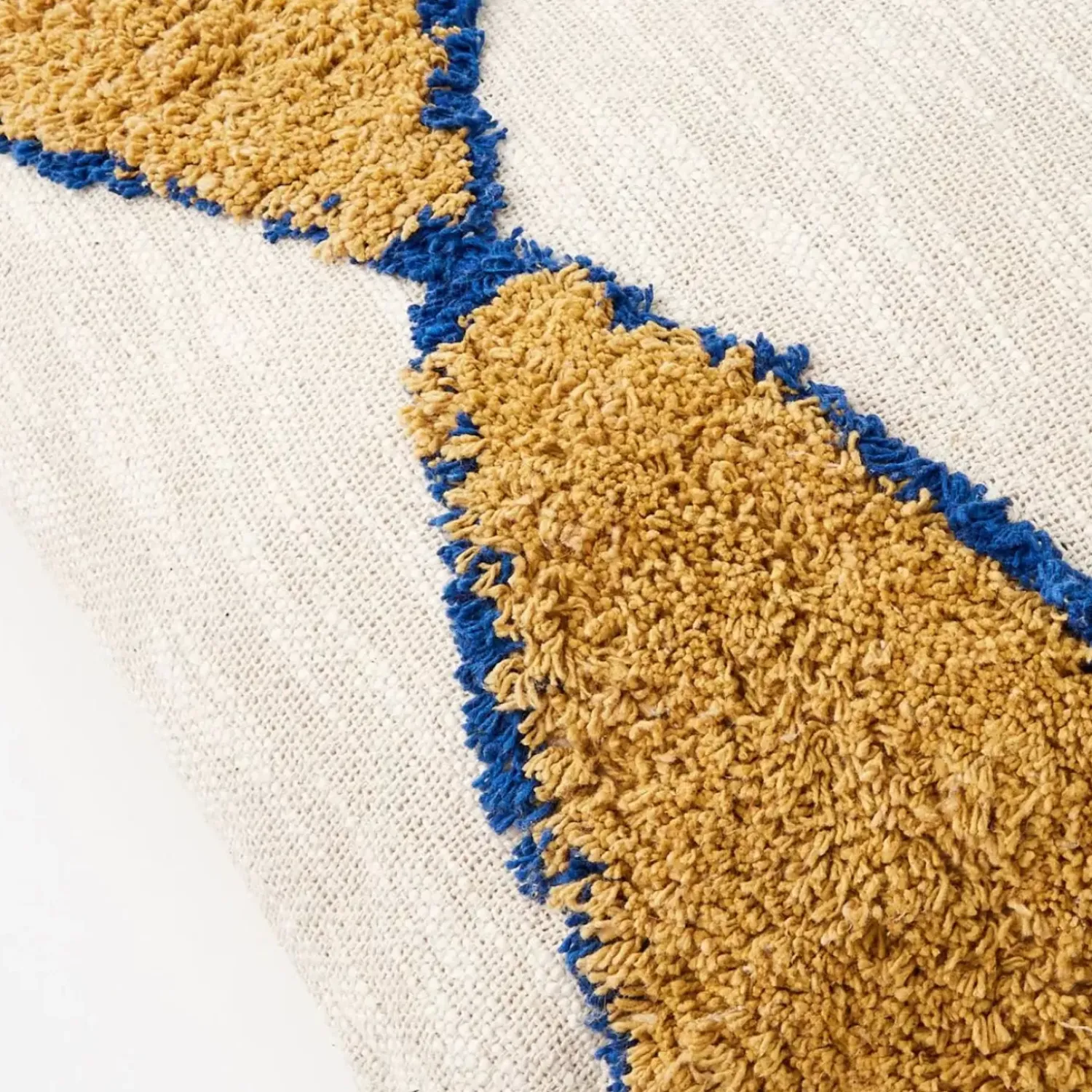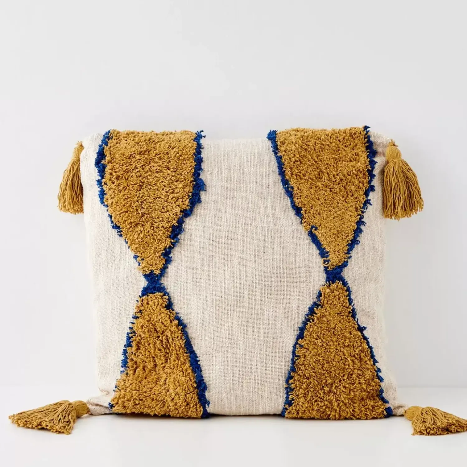 Take A Casual Approach To Soft Furnishings With A Plush Throw Cushion. The Two-Tone Shaggy Look With Contrasting Blue Piping And Corner Tassels Adds A Rustic, Bohemian Look To Your Lounge Area.