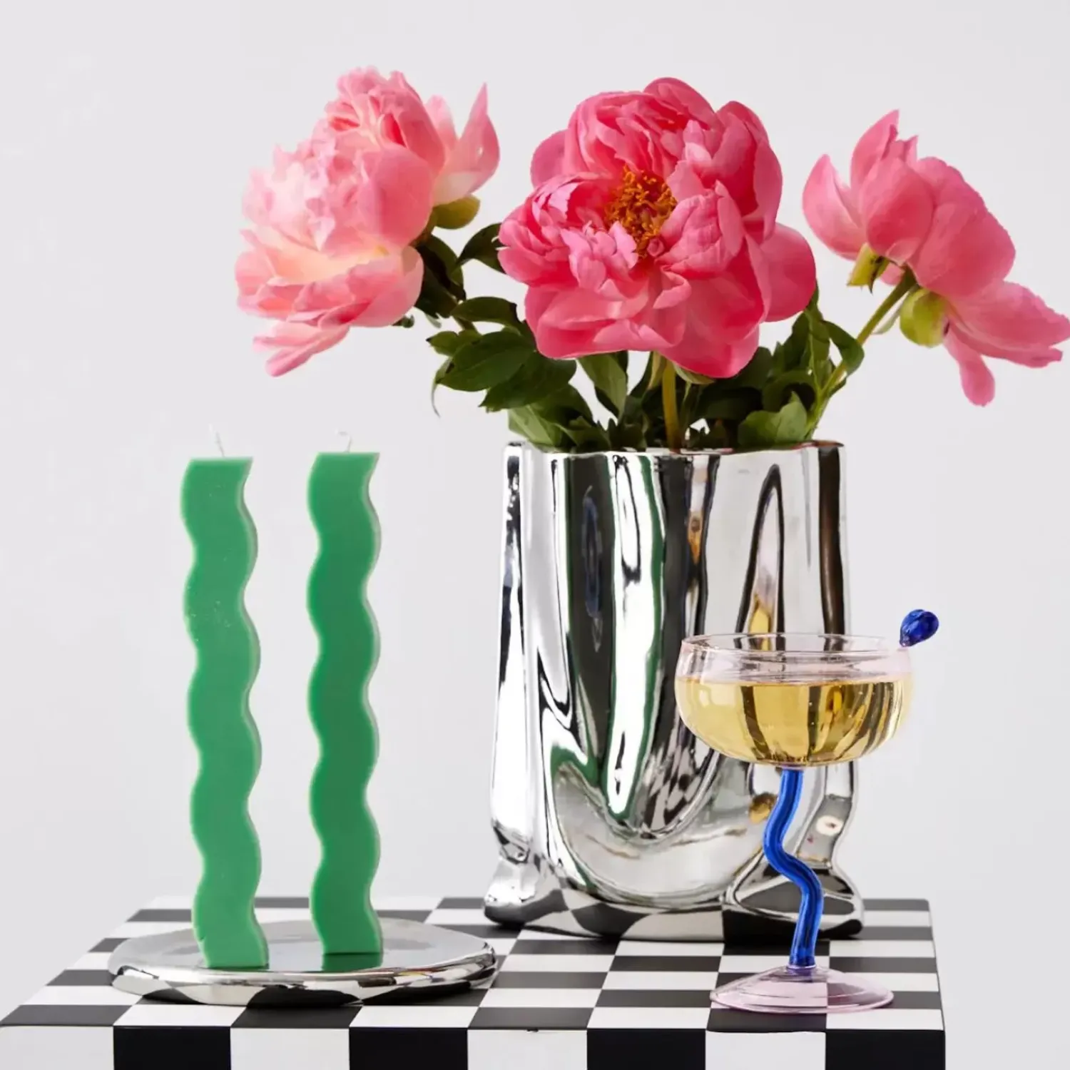 Wave Your Way Into Stylish Candle Displays With This Wave-Shaped Dinner Candle Set Of 2 In Jade Green Wax. Style With Our Range Of Shaped Candles For A Dynamic Display.
