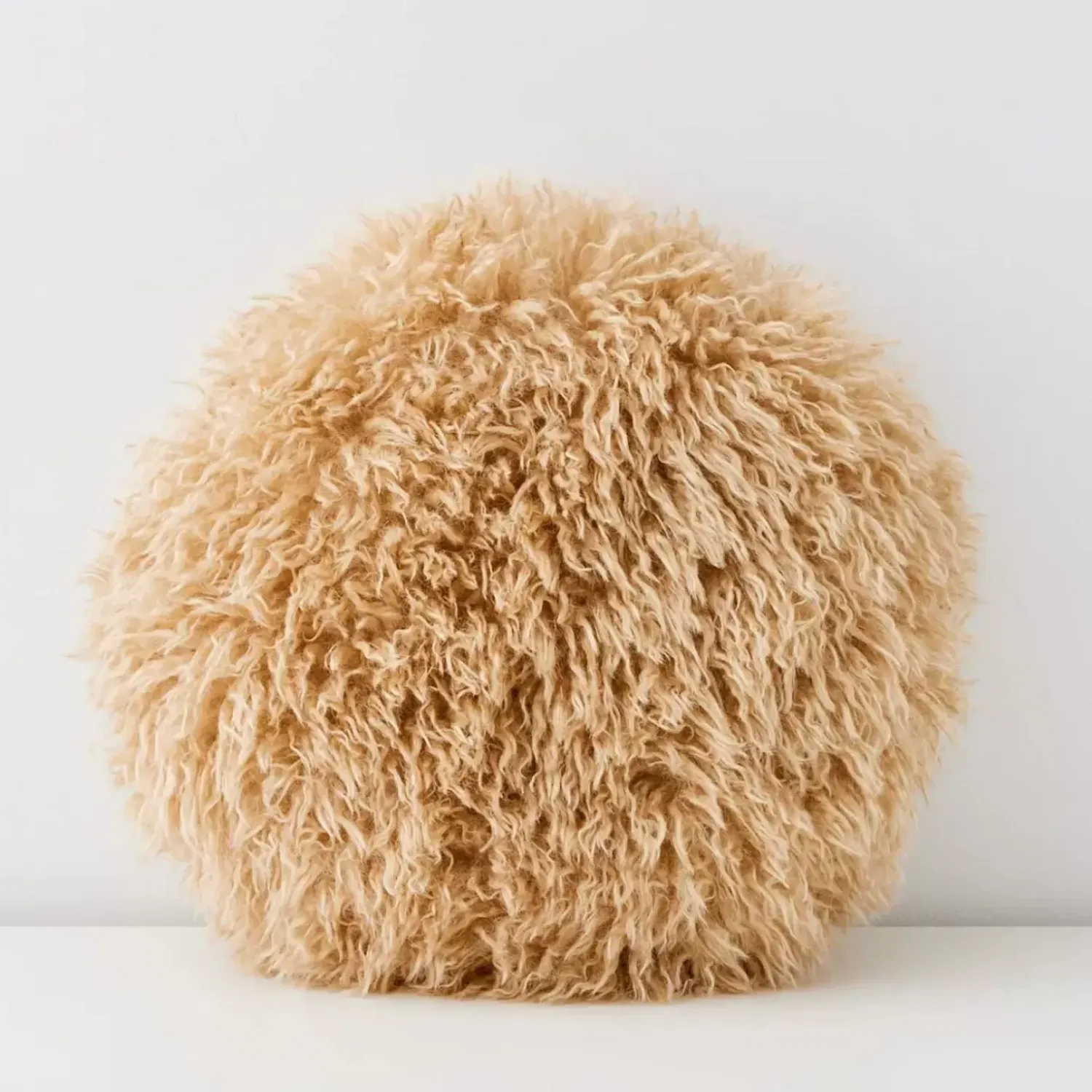 Lean Into Luxury With This Circular, Plush Accent Cushion In Camel Coloured Faux Fur. The Perfect Statement Accessory For A Bold, Diva-Like Living Room Lounge.
