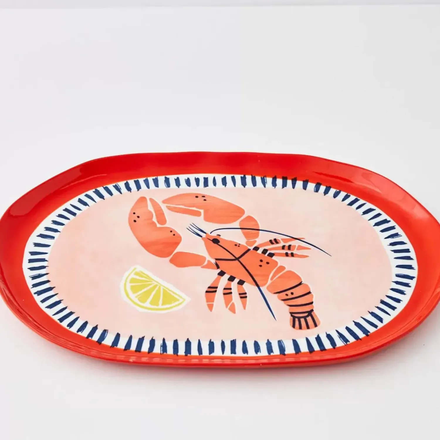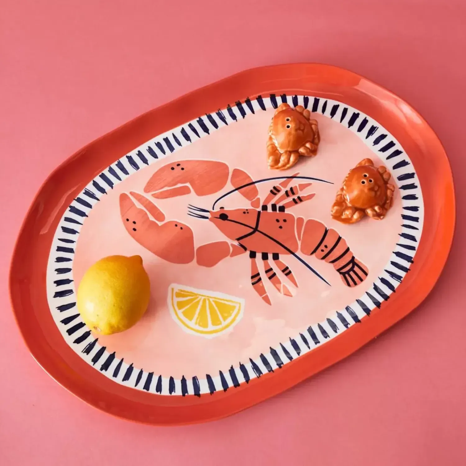 Lobster Rolls At The Ready; This Joyful, Painted Ceramic Serving Platter Celebrates The King Of All Crustaceans In Bright Pops Of Red, Blue, Yellow And Orange.