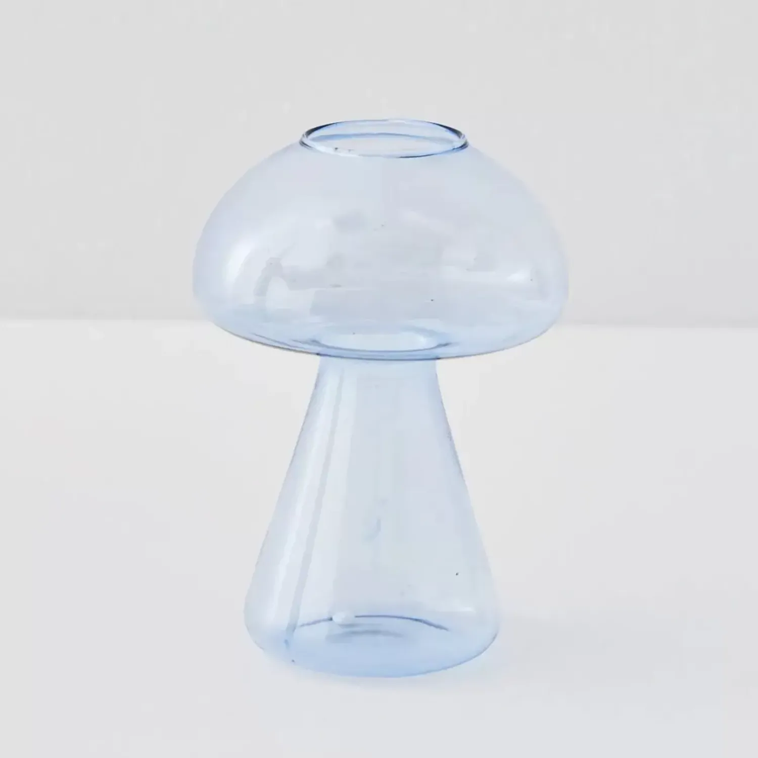 The Mushroom Bud Glass Vase Features A Unique Mushroom-Like Shape With A Flared Out Top That Is Perfect For Displaying A Bouquet Of Flowers.