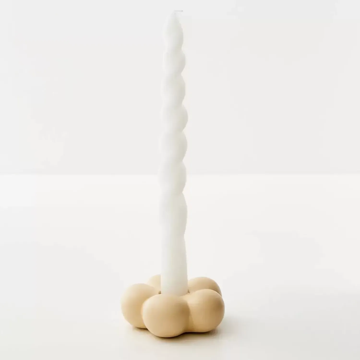 Add Cute, Youthful Freshness To Your Candle Displays With This Yellow Ceramic Flower-Shaped Taper Candle Holder That Pairs Perfectly With Coloured Dinner Candles In Fun Swirled Shapes.