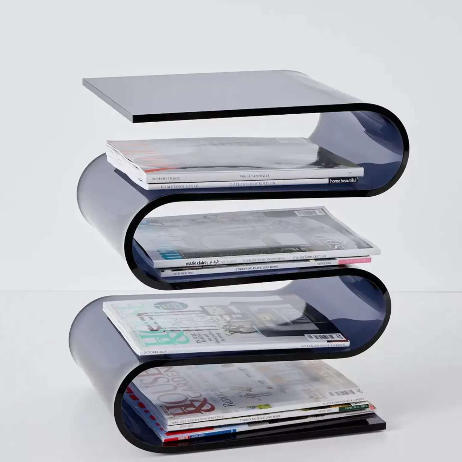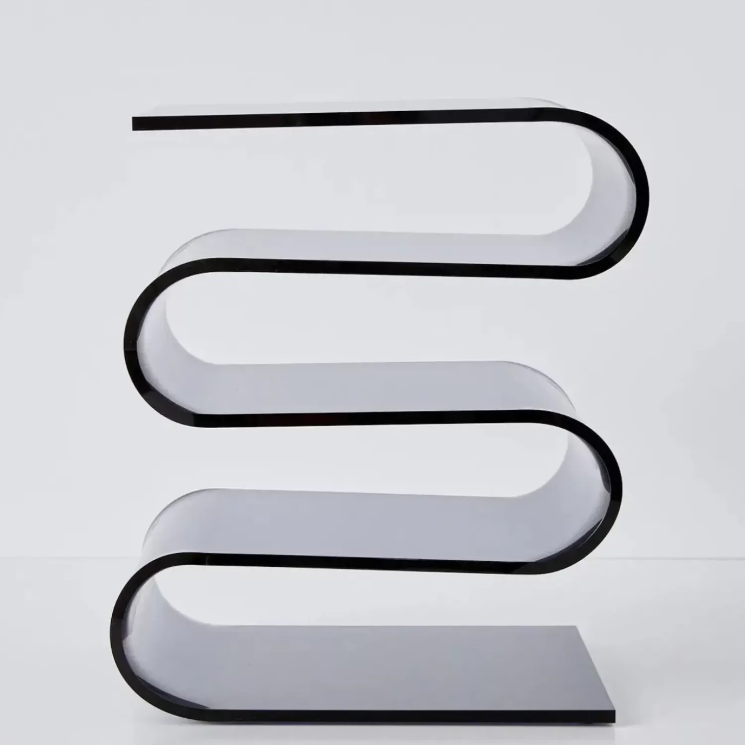 This Mind-Bendingly Clever Design Side Table Is Full Of Storage Options Between It’S Multiple ”S” Bends. The Moody, Smoked Grey Acrylic Pops When Paired With Metallic Décor.