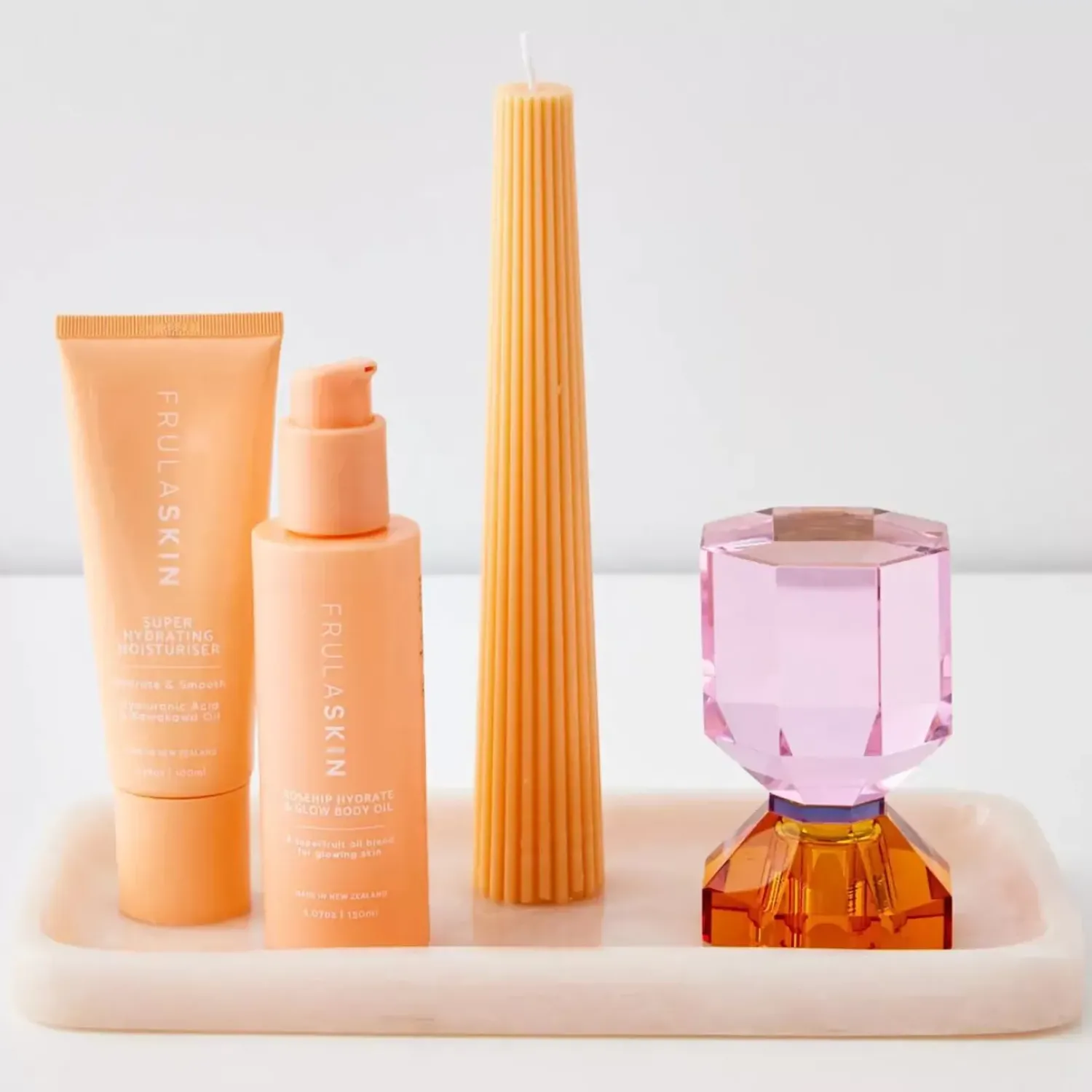 Strike A Pose With This Fruit-Hued Taper Candle In Soft Soy Wax. The Apricot-Coloured Wax Pairs Perfectly With Warm And Neutral Interiors, Adding A Pop Of Colour To Dining Settings.