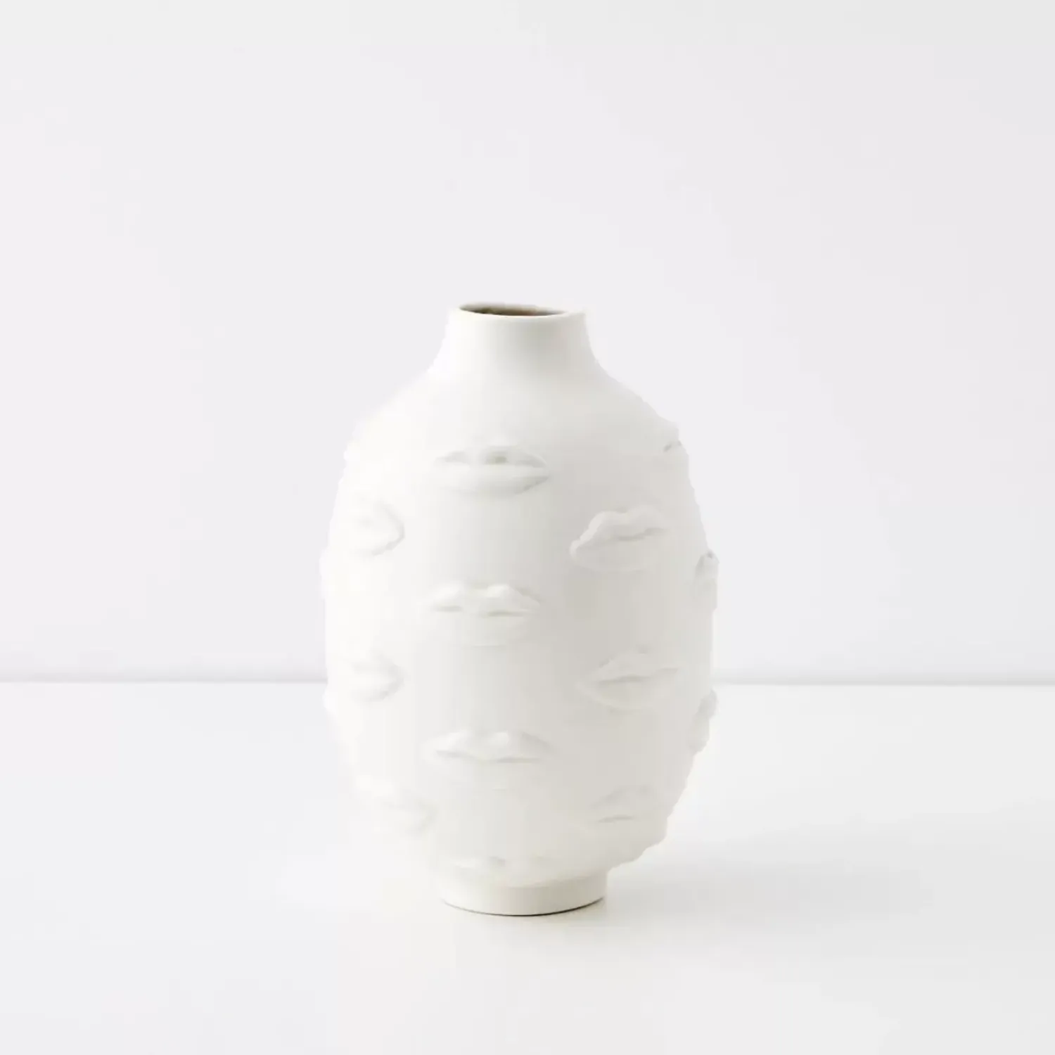Take Ceramics To Pout-Worthy Proportions With A Modern Spin On A Classic Urn. Striking Matte, White Finish Pares Back The Super Kitsch Lips That Are Puckerly Planted Around This Sculptural Vase.